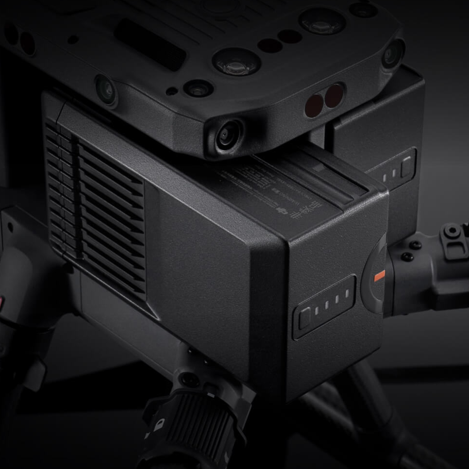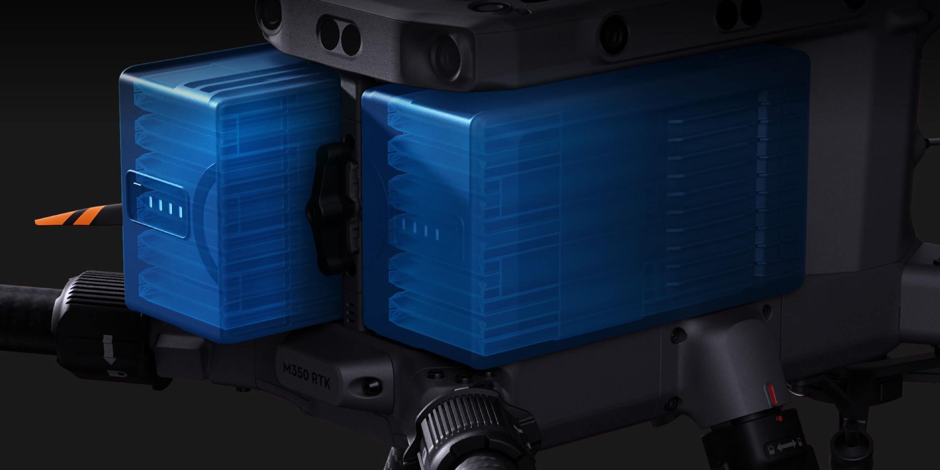 El Matrice 350 RTK está equipado con un nuevo sistema de doble batería TB65 que admite cambio en caliente y permite volar varias veces sin tener que apagarlo. La batería permite hasta 400 ciclos de carga, [3] lo que reduce el coste de cada vuelo.Párrafo nuevo