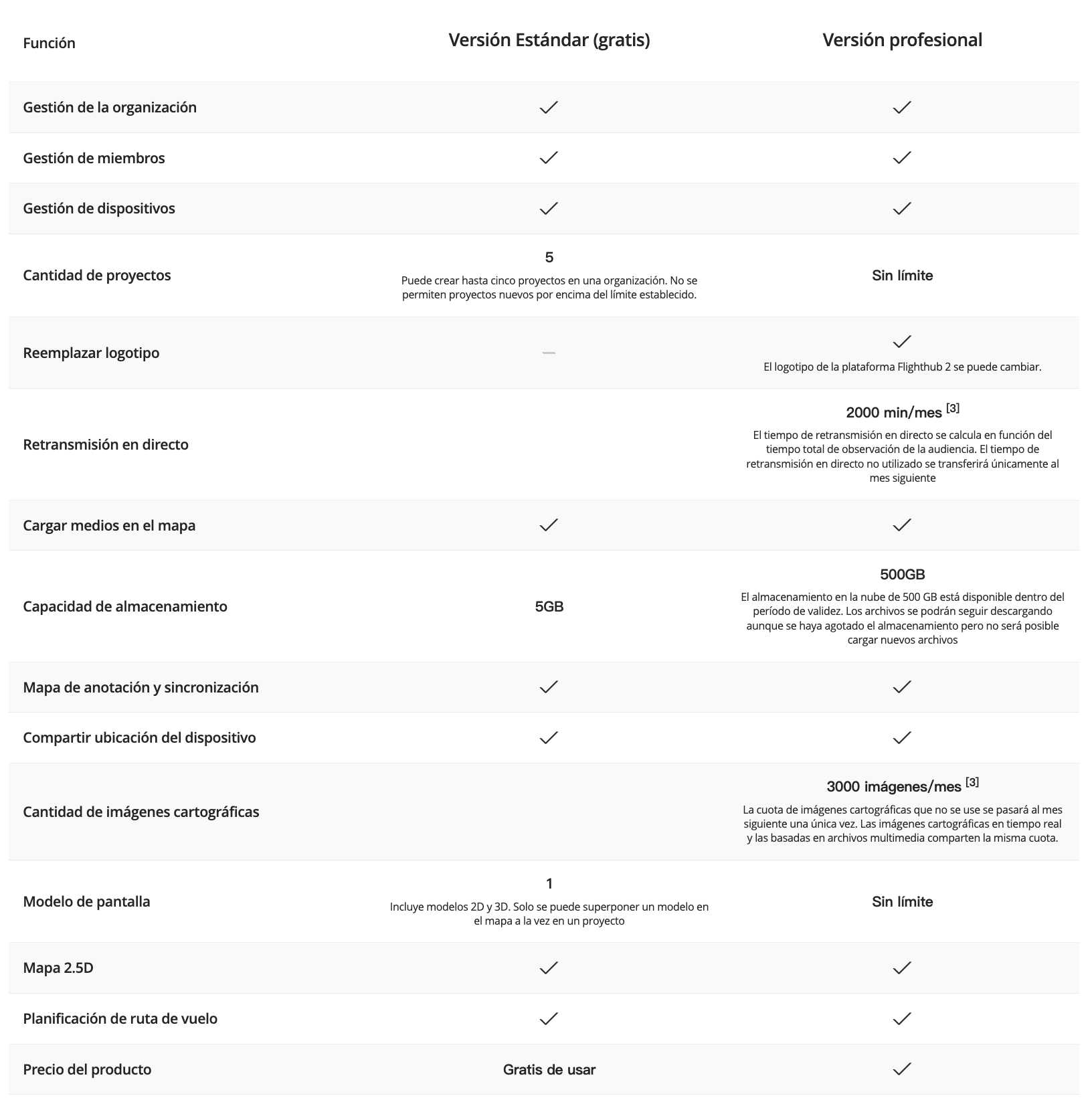 DJI Flighthub 2 proporciona a los usuarios corporativos un espacio de almacenamiento gratuito de 5 GB, que se puede utilizar para almacenar imágenes, vídeos, rutas de vuelo, modelos, etc. Puede comprar este paquete para aumentar su capacidad de almacenamiento.