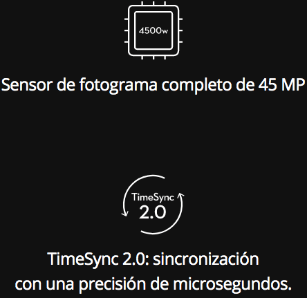 - TimeSync 2.0 alinea la cámara, el controlador de vuelo, el módulo RTK y el estabilizador con una precisión de microsegundos.